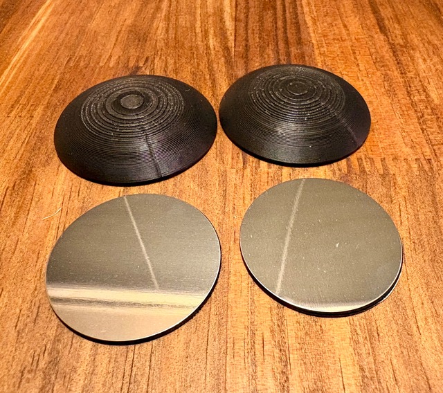 ドラムペダル用アタッチメントです。 - マイナーアップデートしました - 台座で固定する周囲の厚みを増やし、より強固にしました。これにより直径が約6mm大きくなりました。 尚、高さは変わりませんので、使用感に変わりはありません。 足裏と接する面積を少なくして点に近づけることで、力の伝達ロスを抑えます。 バスドラムペダルに付ければ音量、粒立ちがアップします。ハイハットペダルに付けると、キレが良くなり、よりシャープな音になります。(取り付け位置によってフィーリングがかなり変わりますので、いろいろ試して下さい) 台座となるプレートを介して本体を磁石で貼り付けるため、脱着が容易です。取り外すと、ペダルはほぼ元の状態になるので、ライブ中でも曲によってLOUDSTEPの有無が選択出来ます。 ※原状復帰も容易になるため、ペダルにマスキングテープを貼ってから台座プレートを付けることをお勧めします。 ※商品はLOUDSTEP Magnet本体と台座プレートです。ペダルは含まれません。 ※本体には強力な磁石が入っていますので、取り扱いにはご注意下さい。 ※3Dプリンターで出力しますので、若干の積層痕があります。 ※台座プレートはシルバーに変更となりました。 ※仕様は変更される場合があります。